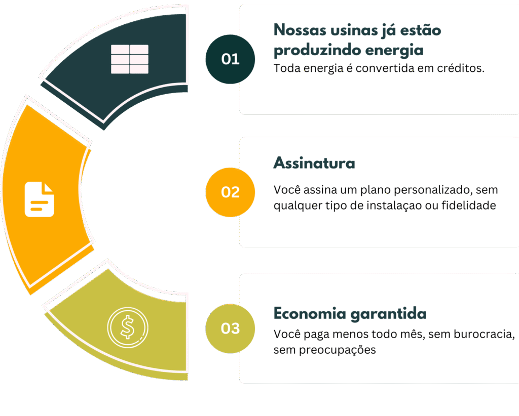 Nossas usinas solares estrategicamente distribuídas garantem um nível confiável de energia limpa para diversas regiões do Brasil. Com tecnologia moderna e operações eficientes, possibilitamos o acesso à energia renovável sem a necessidade de instalações ou obras. Nossa infraestrutura foi planejada para atender residências, empresas e propriedades rurais , oferecendo uma alternativa sustentável e acessível para quem reduzir a redução do impacto ambiental e tornar o consumo de energia mais inteligente. Onde há sol, há oportunidade de transformar a forma como você utiliza energia!